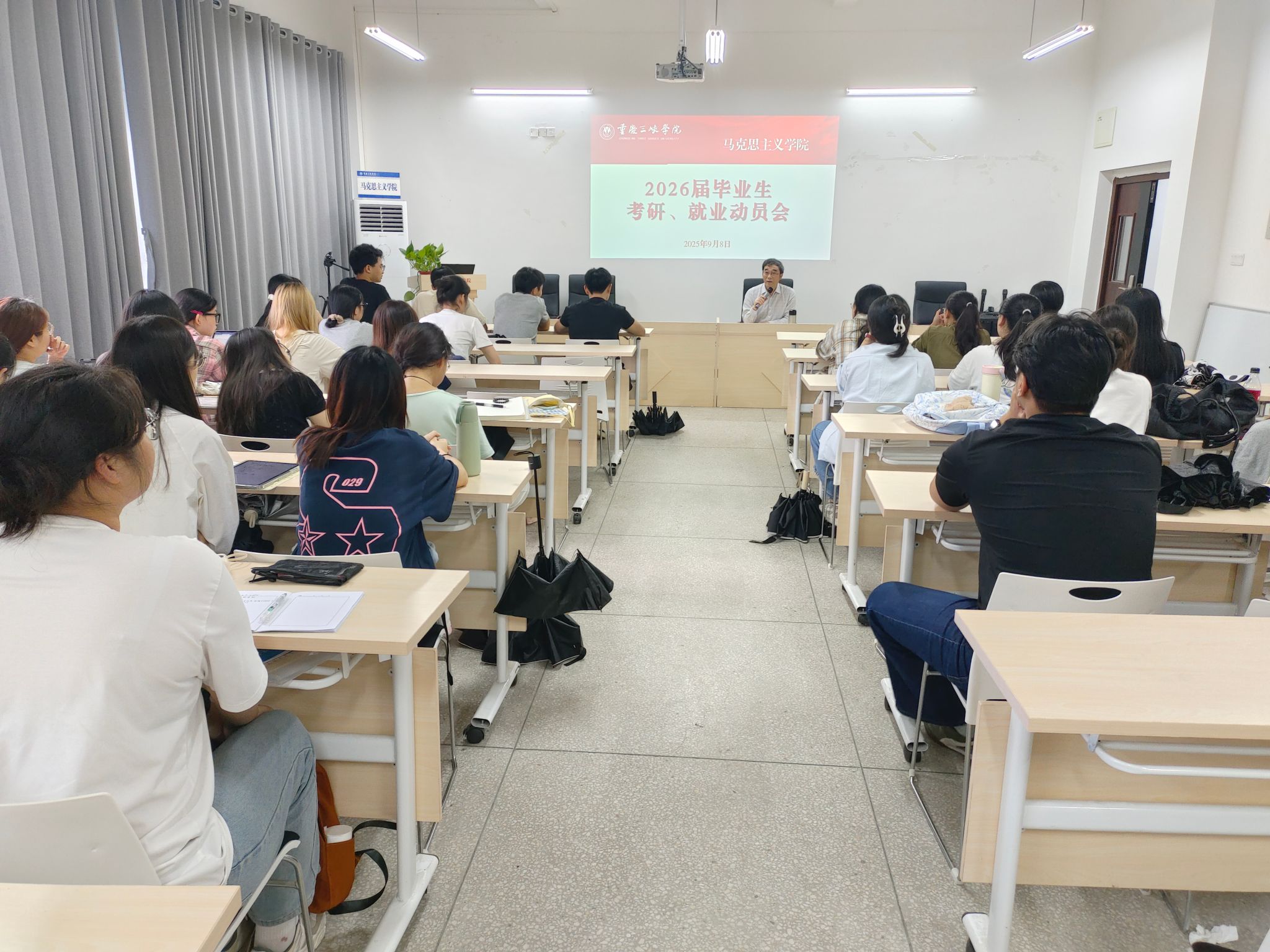 2025年9月8日下午,十大菠菜网正规平台在博学楼3-424会议室召开2026届本科毕业生考研、就业动员大会。学院党总支书记、副院长任鹏老师作动员宣讲,2026届全体本科毕业生参加。